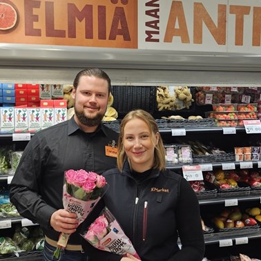 K-RYHMÄ ALUETIEDOTE 14.10.2025 Teemu Kaitakari ja Noora Partti saavat avaimet 15.11. K-Market Ilpoisiin ja 1.12. K-Market Pernoon. Heidän kauppiasuransa alkaa kahden K-Marketin voimin.