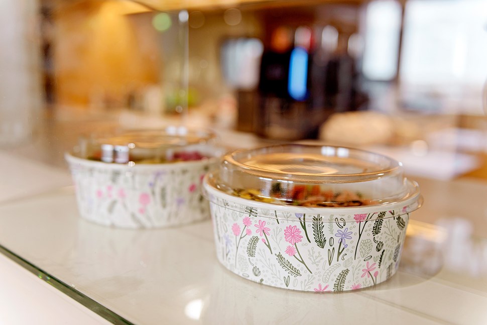 Uusien Menu Kesäpäivä -kertakäyttöastioiden raikas ulkoasu tuo näyttävyyttä vitriineihin ja piristystä take away -kasseihin.