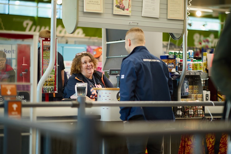 Tina on työskennellyt asiakaspalvelutyössä jo 40 vuotta. K-Supermarket Pohjois-Haagassa hän on ollut reilun vuoden pääkassan tehtävissä, vastuualueena lisäksi lehtiosasto. ”Parasta työssäni on ihmisten kohtaaminen. Tässä näkee koko kirjon. Saan kysellä kuulumisia, tsempata ja olen jopa antanut koululaisille neuvoja ruotsin koetta varten, koska olen kaksikielinen”, Tina listaa. ”Tämä työpaikka on minulle täydellinen paketti: timanttiset asiakkaat, ihanat työkaverit ja kauppiaat.”