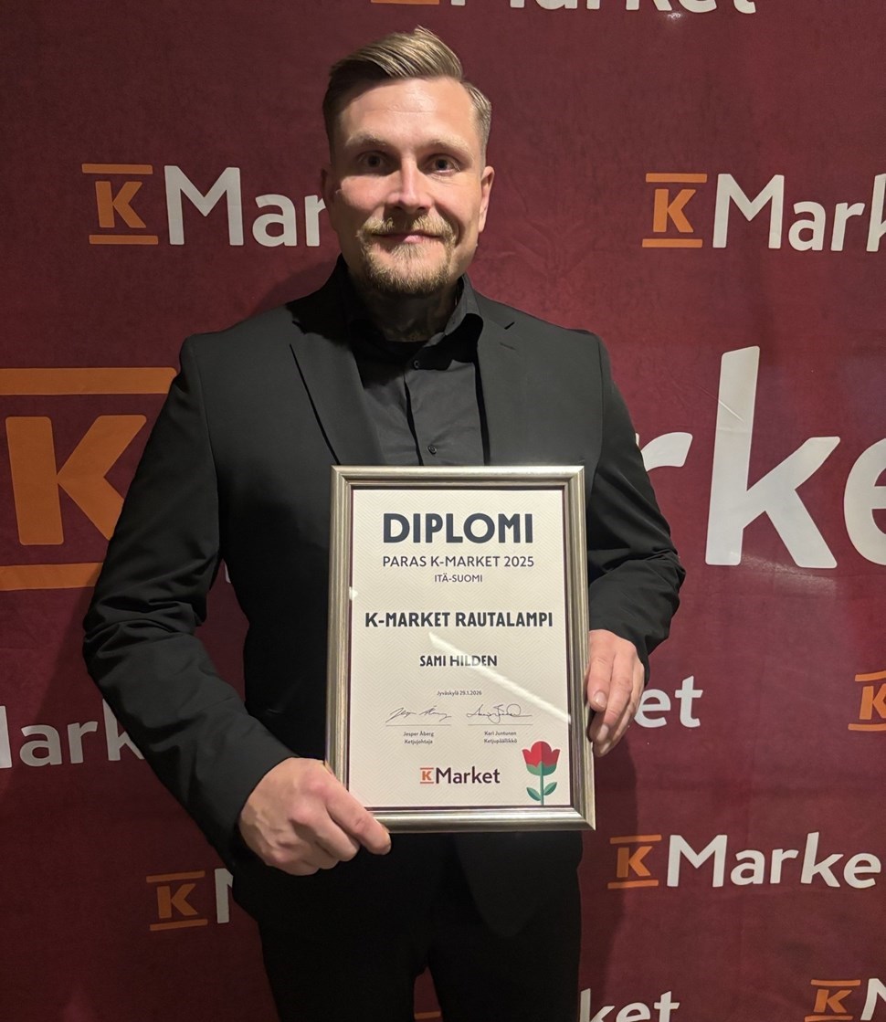 Itä-Suomen vuoden 2025 parhaaksi K-Marketiksi on valittu kauppias Sami Hildénin luotsaama K-Market Rautalampi.