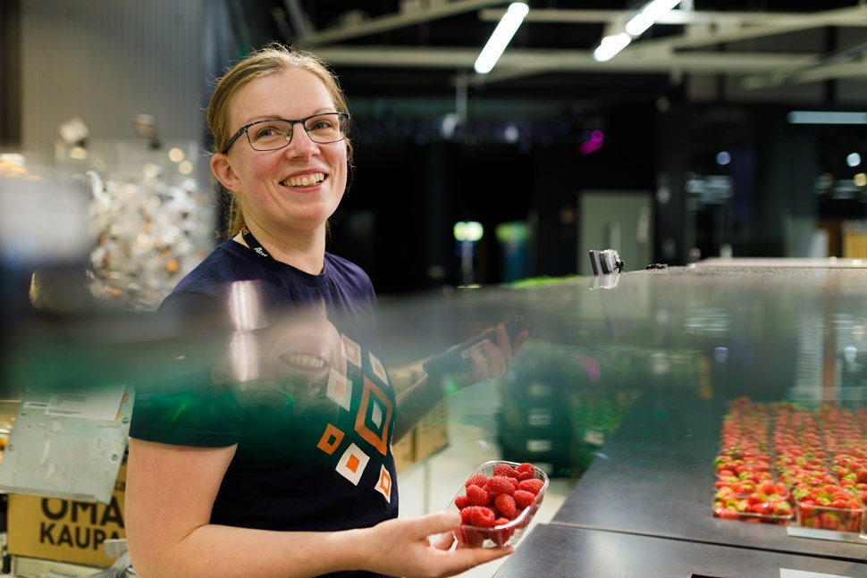 ”Hedelmä-, vihannes- ja leipäosastot ovat suosikkejani”, Eveliina paljastaa. ”Kaupan paistopiste takaa tuoreet ja tuoksuvat eväät niin töihin kuin kotiin vietäväksi. Pakatun leivän valikoimasta teemme asiakkaiden näköisen, jossa on myös erikoisruokavaliot huomioitu.”