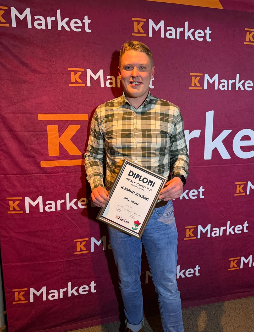 Pohjois-Suomen vuoden 2025 parhaaksi K-Marketiksi on valittu K-Market Reisjärvi, jonka kauppiaana toimii Eemeli Vinkka.