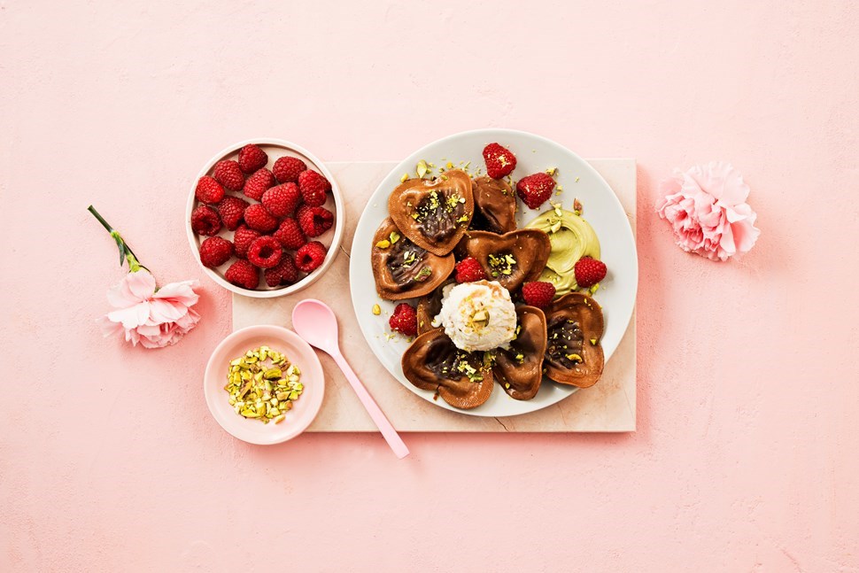Ruokaelämyksiä haetaan nyt enenevissä määrin myös kotikeittiöissä. Uutuusjälkiruoka vastaa tähän trendiin. Sydämenmuotoisista suklaaravioleista saa tehtyä kauniin ja suloisen annoksen vaikkapa ystävänpäivään tai muuhun tärkeään hetkeen.